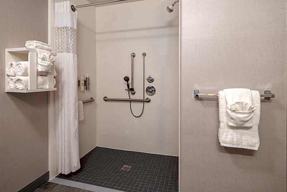 Any corresponding photo may not reflect the specific accessible room type or room feature. This mobility and hearing accessible, non-smoking room features two queen-sized beds, and an accessible roll-in shower. The room also has a visual alarm and notification devices for the doorbell or door knock and incoming phone calls. The room features comfortable soft seating, microwave, refrigerator, a HDTV, and easy to operate alarm clock/radio. The free high-speed internet access will help you stay connected while on the road. If you prefer not to work at the desk, you can use the convenient lapdesk instead. You'll also enjoy the convenience of having a coffee maker with tea service and iron/ironing board in your room.